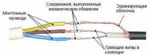 Външният изолационен слой на нагревателния кабел има следните характеристики. Той е устойчив не само на излагане на влага и високи температури, абсолютно не се страхува от удар агресивна химическа средаДизайнът на кабела може леко да се различава; по-долу е показана друга версия на устройството.