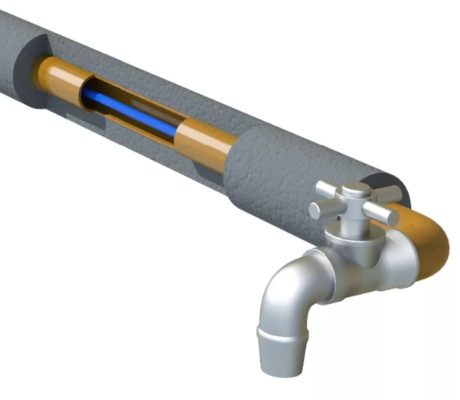 - Ако водоснабдителната система е положена на повърхността, трябва да се помисли за допълнително нагряване на тръбите отвън, под формата на топлоизолационен корпус; това ще намали загубите на топлина през зимата.
