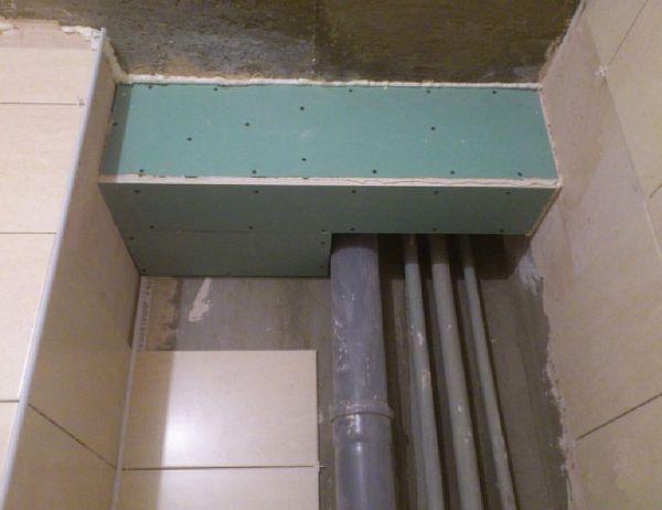 Недостатък на този метод е, че намалява размера на помещението. Този метод за скриване на канализационни тръби за баня с помощта на гипсокартон е идеален за новопостроени къщи, където собствениците сами определят разположението на вътрешните прегради.
