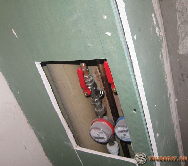 Ако в нишата са разположени водомери, е важно да не забравяте да оставите люк. Най-лесният вариант е да изрежете отвор с необходимите размери и да залепите люка в него.