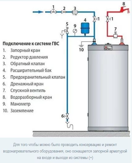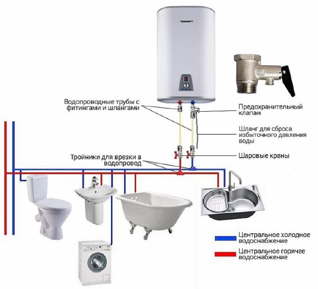 За да улесним по-широк кръг потребители в разбирането как да инсталират бойлер за съхранение, предлагаме да разгледаме обща схема на свързване към водоснабдяването в условия, където има щрангове за студена и топла вода и тръби, свързващи се с крана.