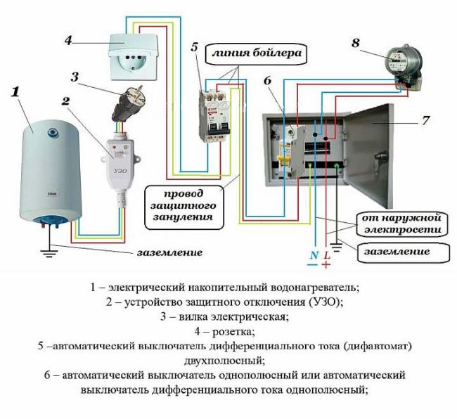 - избор на напречното сечение на електрическия кабел, което се определя от консумацията на енергия на бойлера;