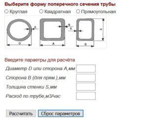 Нека изчислим пропускателната способност на тръбата, използвайки онлайн калкулатор